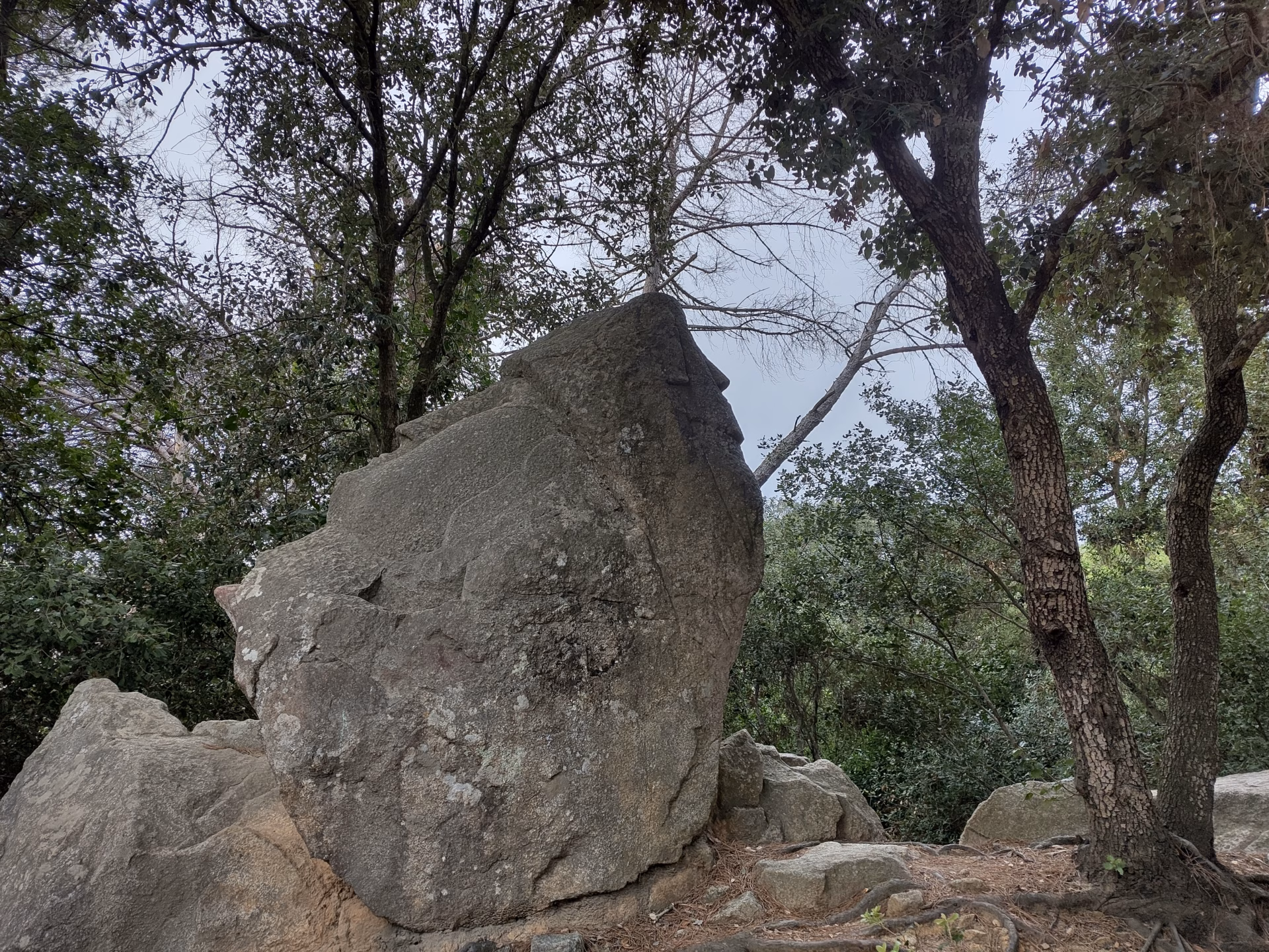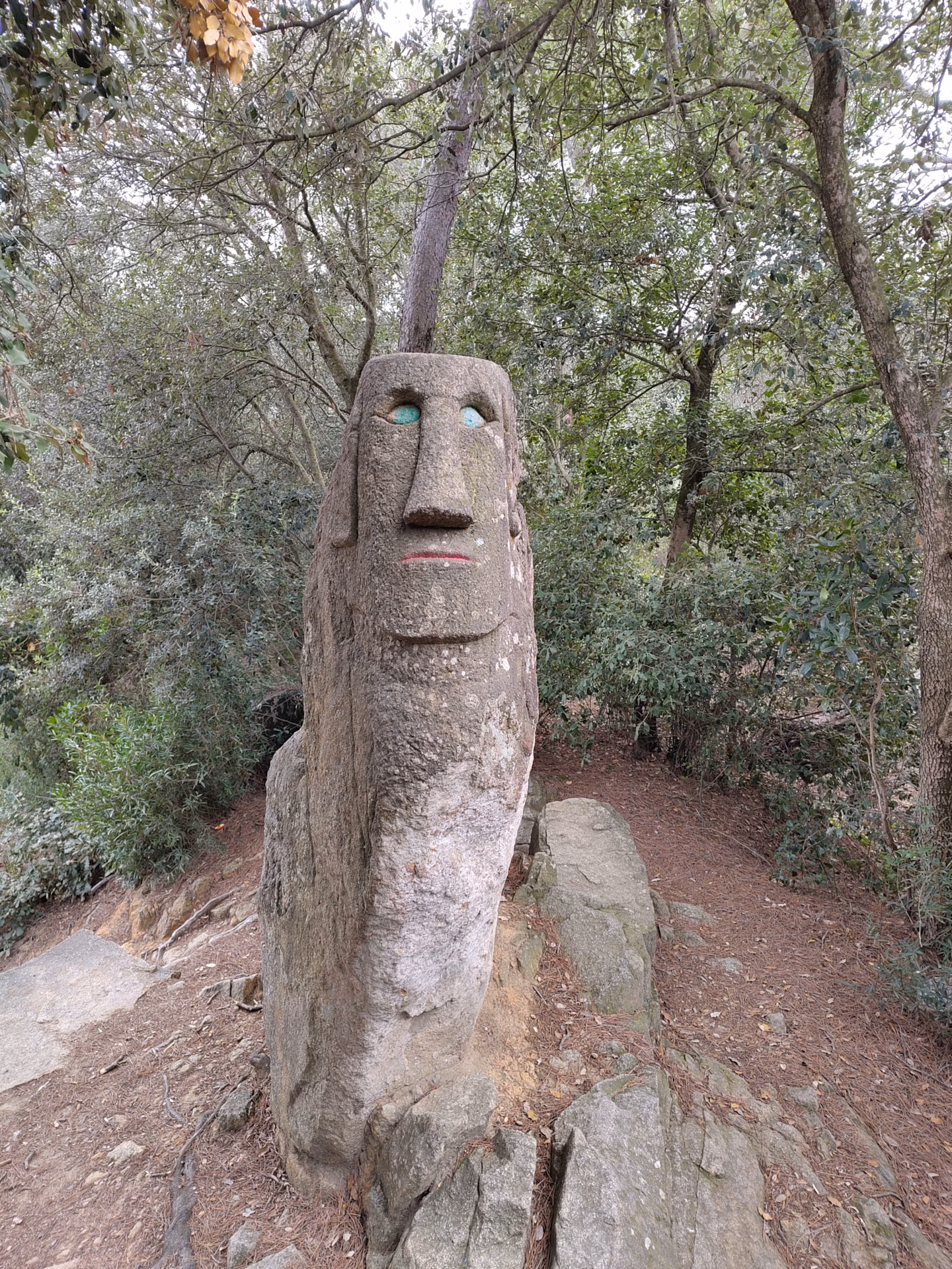El bosque se abre con calma. Entre los pinos y las rocas graníticas aparecen formas imposibles: un elefante, un moái, la cara de un indio. No hay carteles ni explicaciones, solo la sensación de que alguien, hace mucho, decidió jugar con la piedra. Nadie sabe bien quién fue ni cuándo. Tal vez un escultor local en los años 50, tal vez el capricho del tiempo sobre el granito.